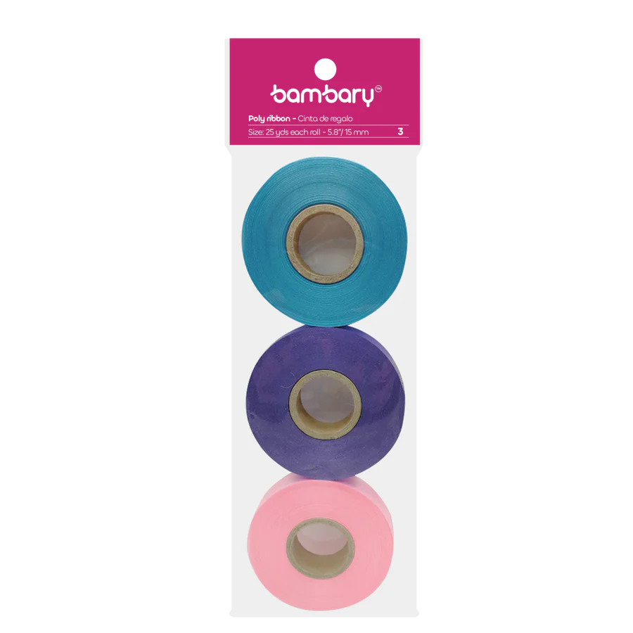 ART SUPPLIES BAMBARY BOW RIBBON 15 mm x 25 yd SET MULTICOLOR 3..