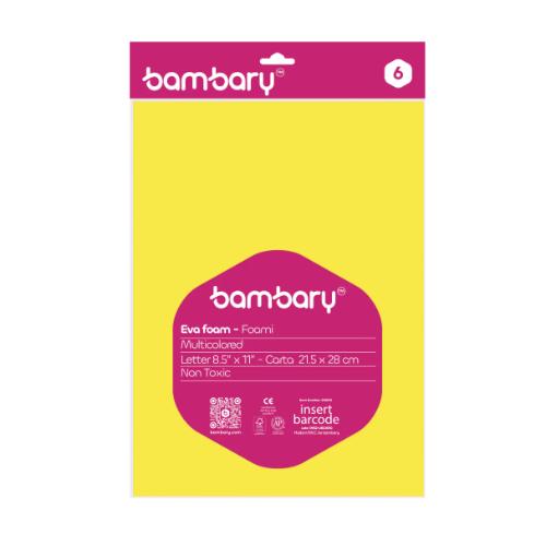 ART SUPPLIES BAMBARY EVA FOAM SHEETS A/S BAG x 6 UNT 215.9 x 279.4 x 1.8 mm MULTICOLOR SET 2