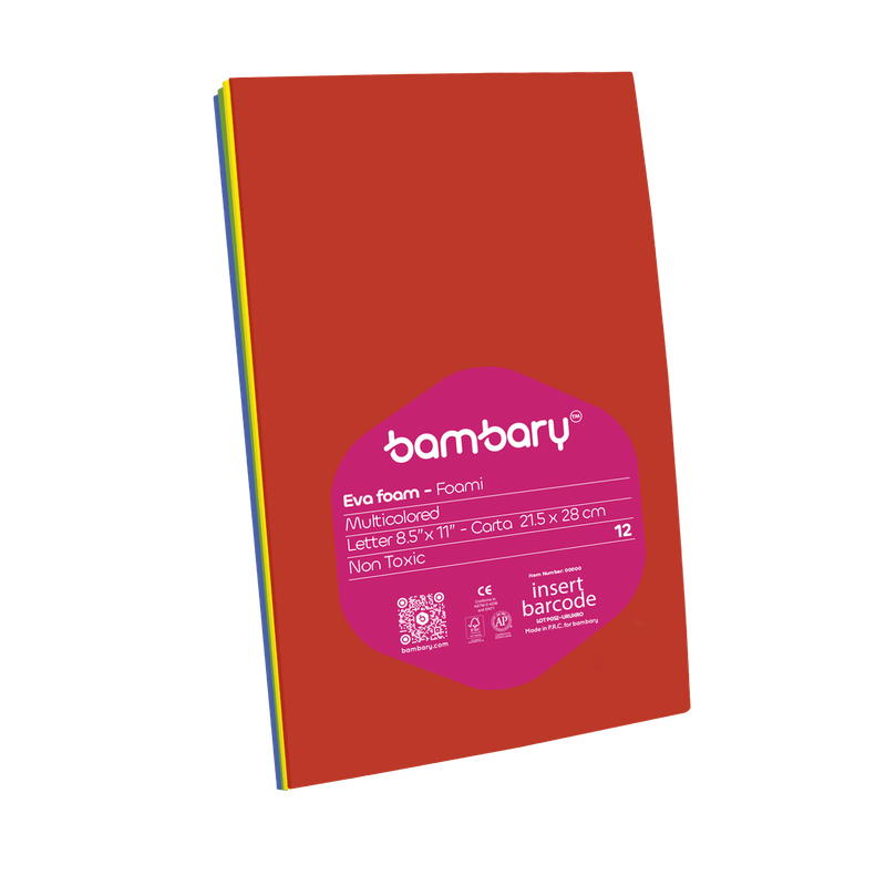 ART SUPPLIES BAMBARY EVA FOAM SHEETS PCK x 12 UNT 215.9 x 279.4 x 1.8 mm MULTICOLOR..