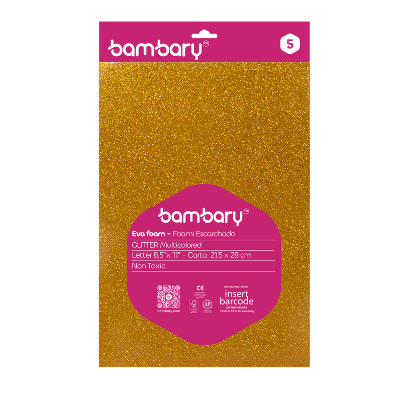 ART SUPPLIES BAMBARY GLITTER EVA FOAM SHEETS A/S BAG x 5 UNT 215.9 x 279.4 x 1.8 mm MULTICOLOR S…