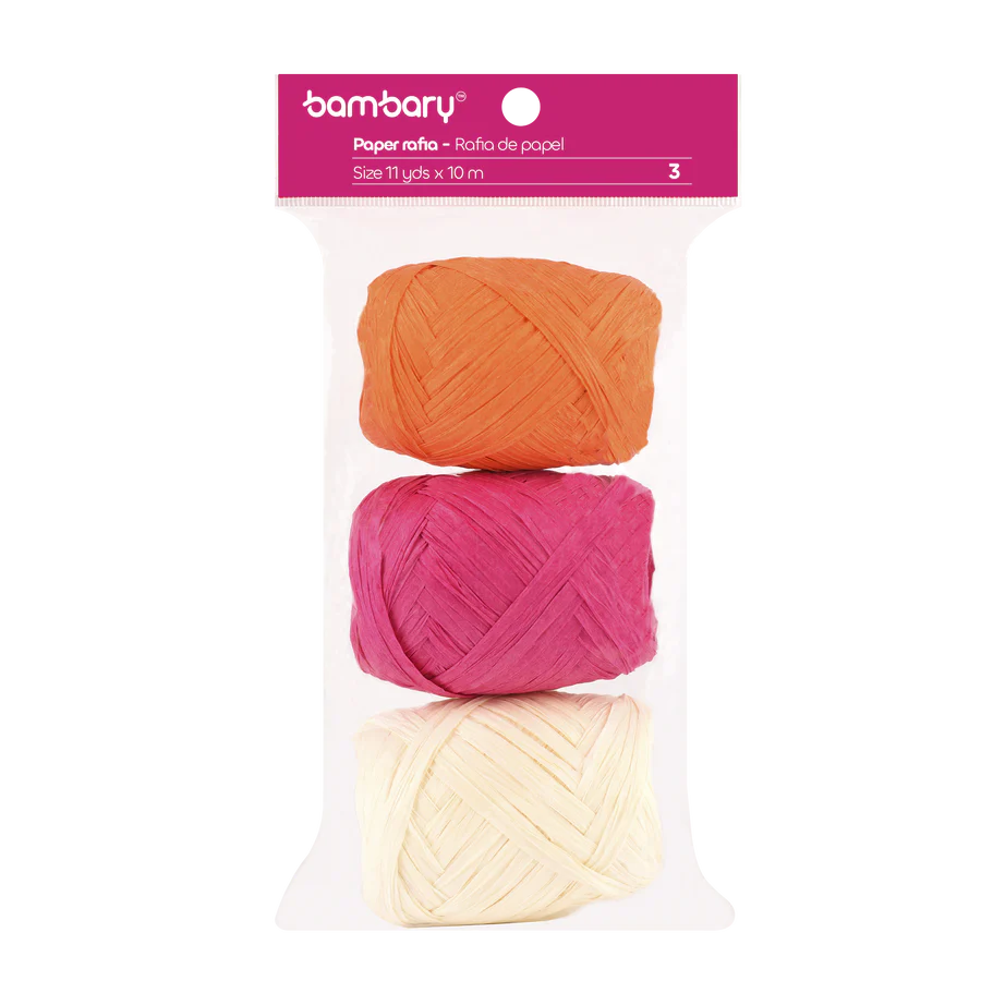 ART SUPPLIES BAMBARY PAPER RAFFIA 3,5 cm x 10 m A/S BAG x 3 UNT MULTICOLOR SET 1..