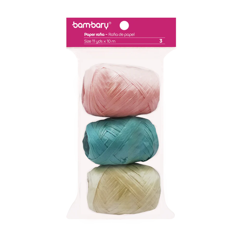 ART SUPPLIES BAMBARY PAPER RAFFIA 3,5 cm x 10 m A/S BAG x 3 UNT PEARL MULTICOLOR SET 9..