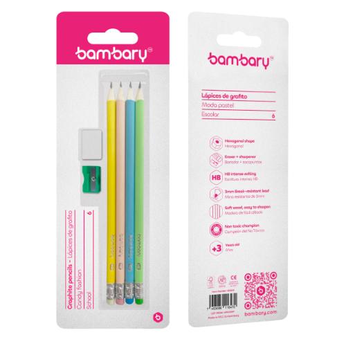 ART SUPPLIES BAMBARY MULTI-SET HEX GRAPHITE PENCILS 7″X2.20 MM HB 4 PCS ERASER SHARPENER