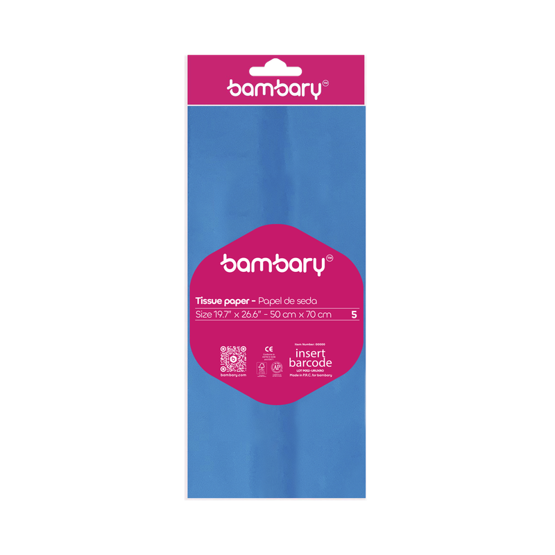 ART SUPPLIES BAMBARY PAPER TISSUE 50 x 70 cm A/S BAG x 3 UNT MEDIUM BLUE