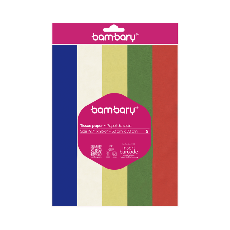 ART SUPPLIES BAMBARY PAPER TISSUE 50 x 70 cm A/S BAG x 5 UNT MULTICOLOR SET 1