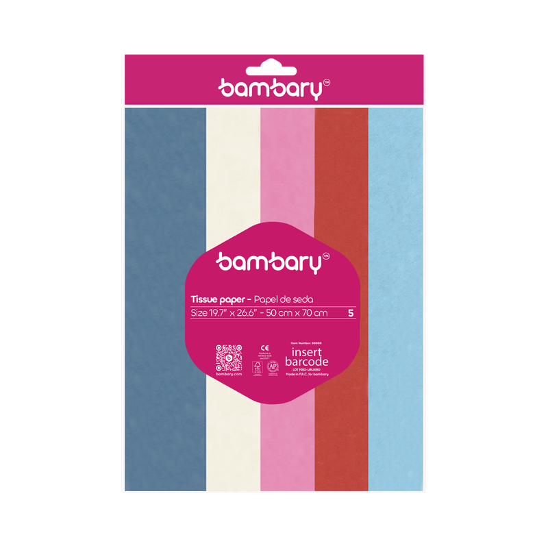 ART SUPPLIES BAMBARY PAPER TISSUE 50 x 70 cm A/S BAG x 5 UNT MULTICOLOR SET 2