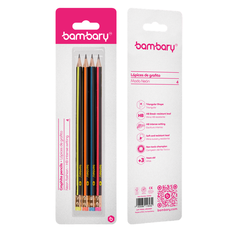 ART SUPPLIES BAMBARY PENCIL TRI GRAPHITE 7″ X 2.20 MM HB STRIP C/NEON 4UNT