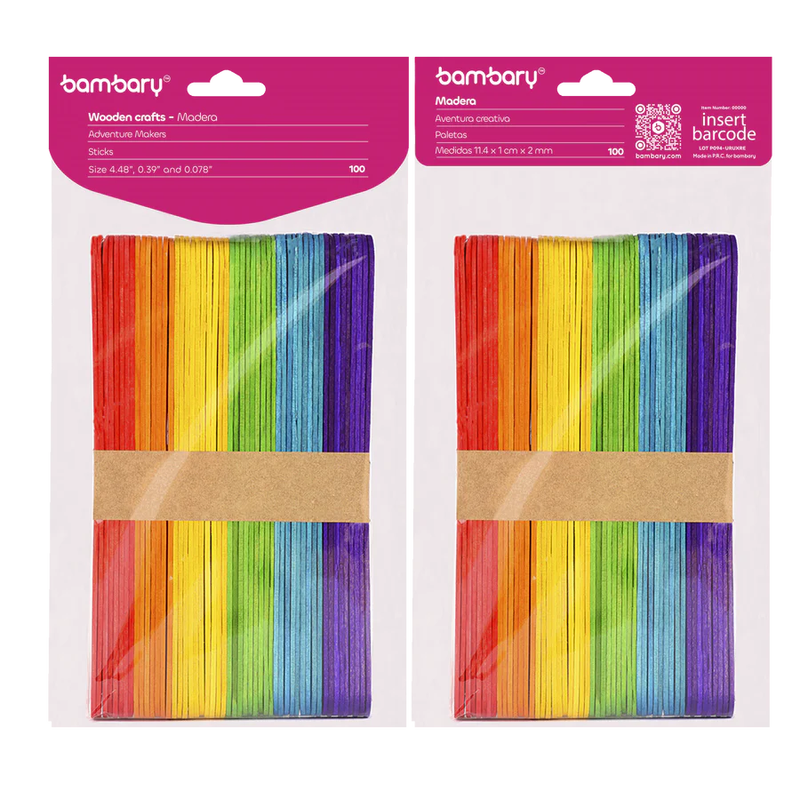 ART SUPPLIES BAMBARY WOOD CRAFT STICKS 150 x 17 x 1,6 mm A/S BAG x 50 UNT MULTICOLOR.. quantity
