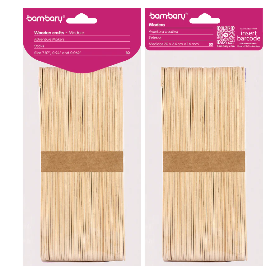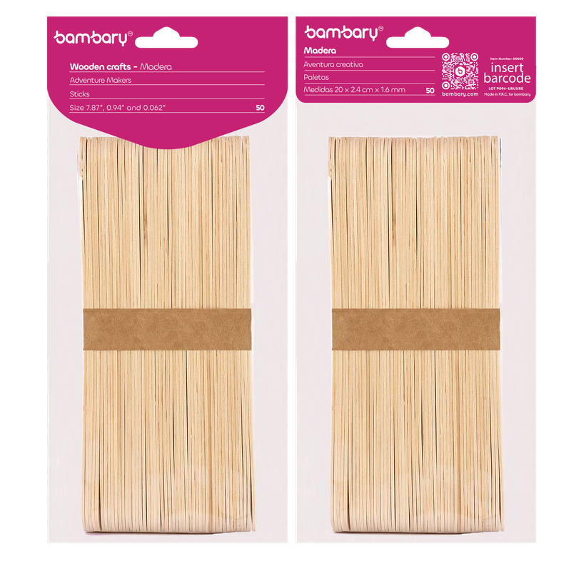 ART SUPPLIES BAMBARY WOOD CRAFT STICKS 200 x 24 x 1,6 mm A/S BAG x 50 UNT BURLY WOOD..