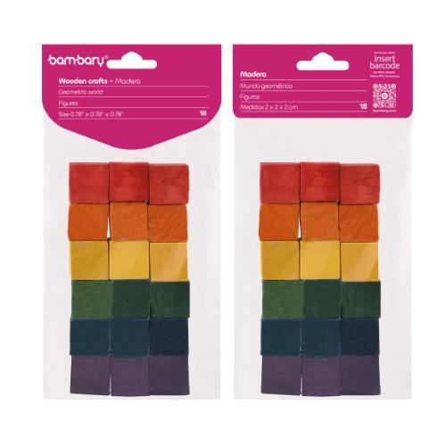ART SUPPLIES BAMBARY WOOD CUBES 20 X 20 X 20 MM A/S BAG 18 UNT MULTICOLOR