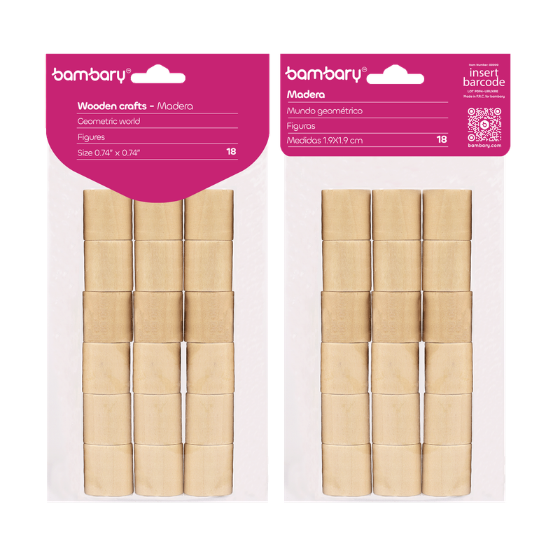 ART SUPPLIES BAMBARY WOOD ROUND CUBES 19 X 19 MM A/S BAG 18 UNT NATURAL