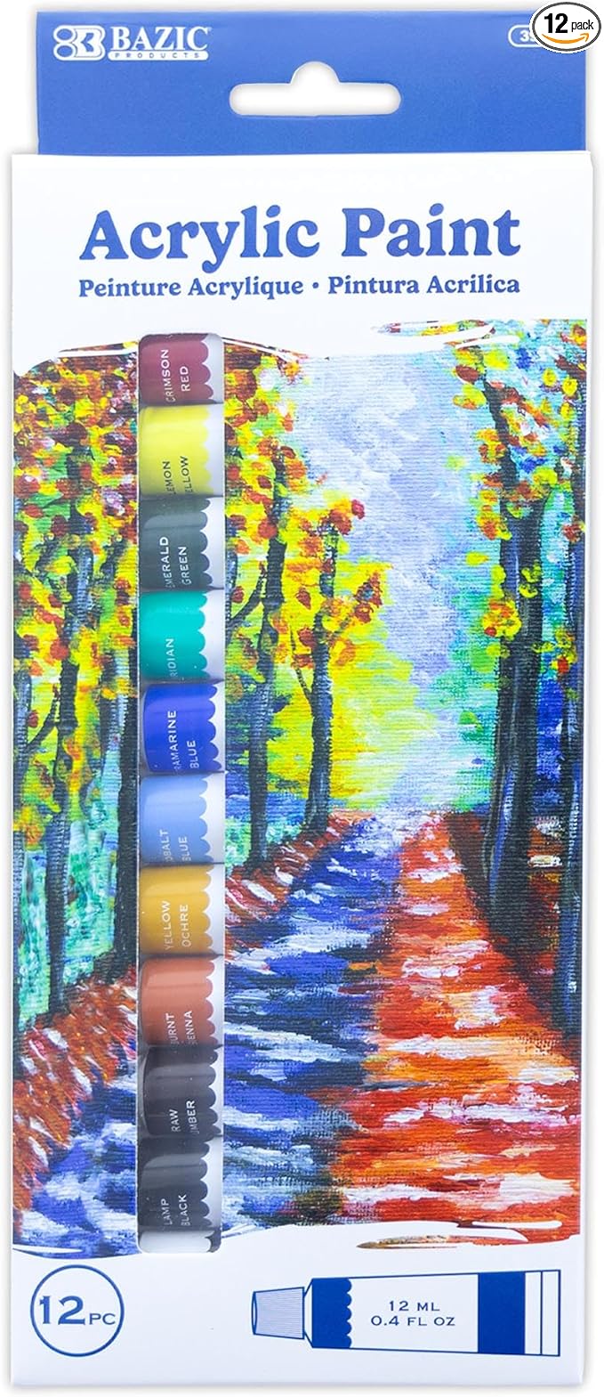 ART SUPPLIES PAINT BAZIC ACRYLIC 0.4 FL OZ (12 ML)12 COLORS quantity